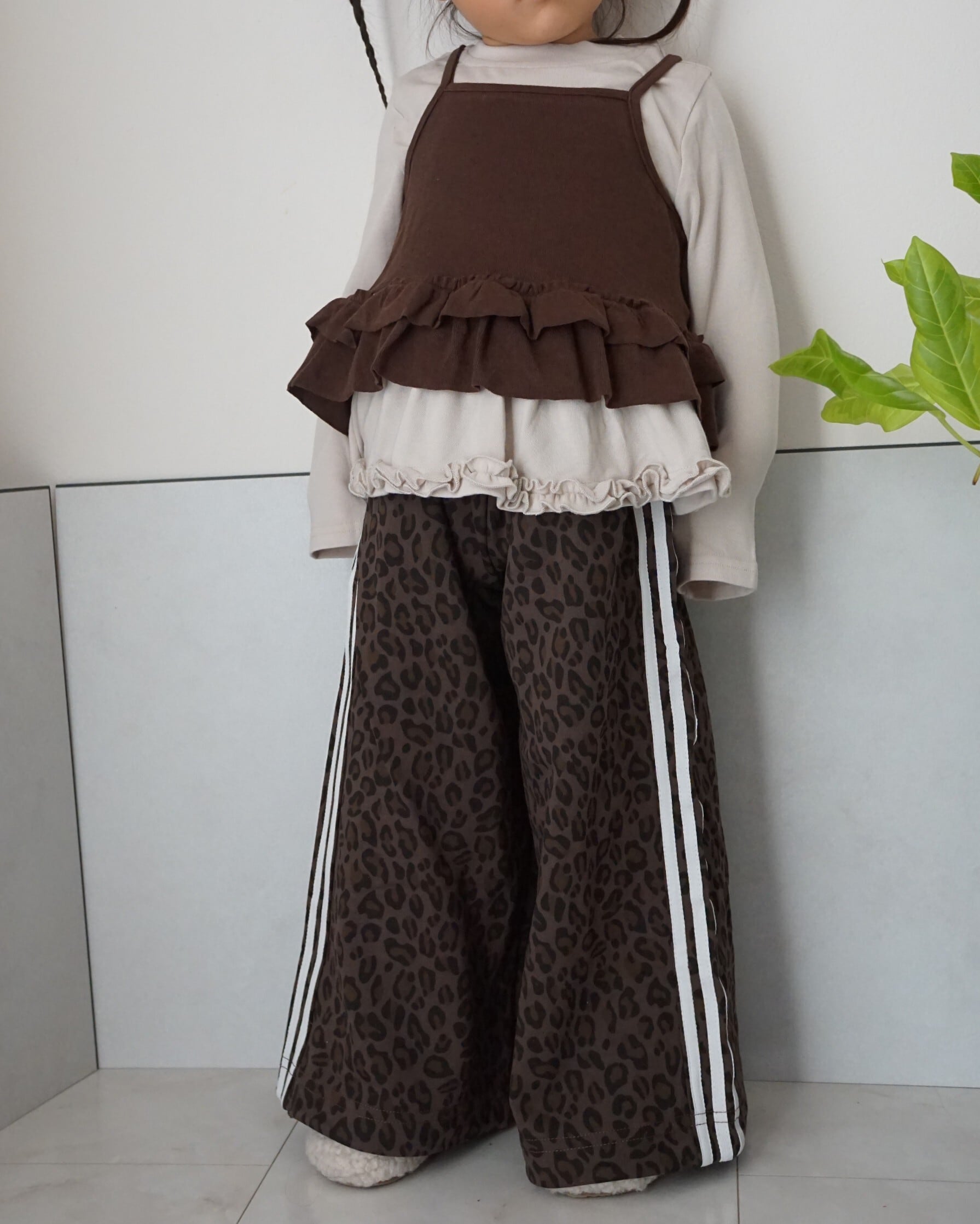 ロンTとキャミソールの裾にはフリルがあり、お子さまの可愛らしさを引き立てるデザイン。